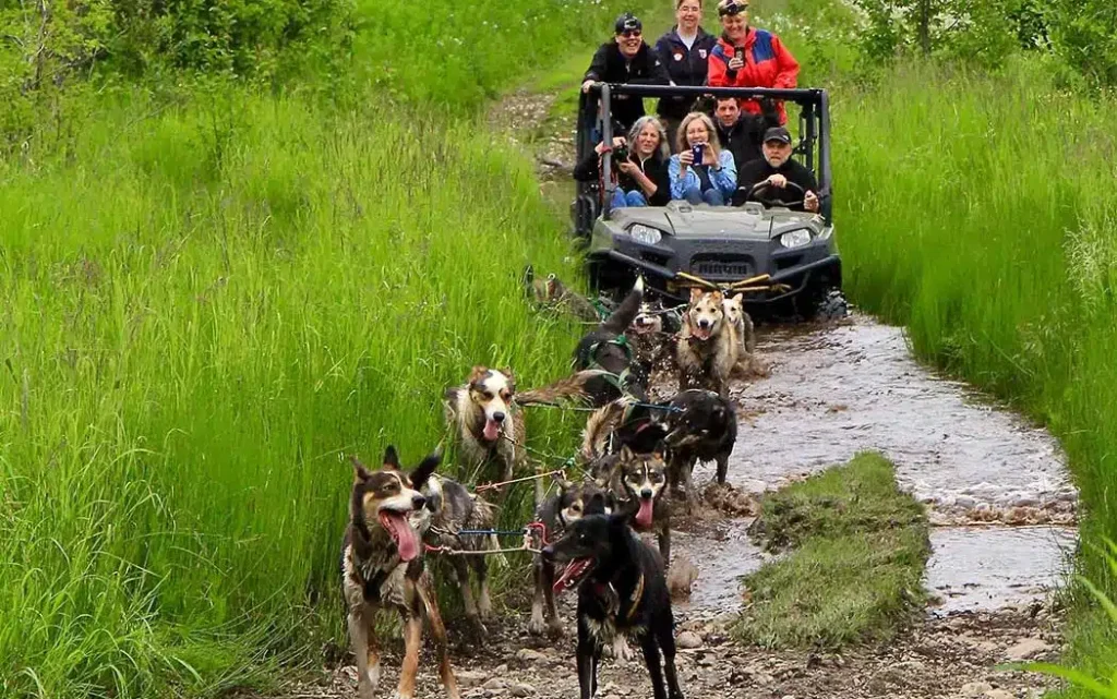 Then take a ride on a multi-seat All Terrain Vehicle, with the option of standing positions. These dog limos are the coolest and most realistic way to ride with a sled dog team in the summer months, as well as great training for the dogs. You’ll see how they love it! Another highlight of your Alaska land tour.