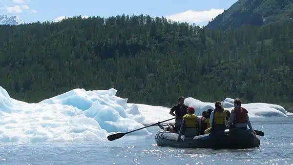 Experienced guides will row you right up to picturesque icebergs on Spencer Lake so you can reach out and touch them. The chance to witness the panoramic views of the Spencer Glacier and surrounding mountains are a highlight of this Alaskan land tour. From Spencer Lake, raft 7 river miles down the pristine Placer River, where the river meets up with the train tracks so you can ride the Glacier Discovery train back out.